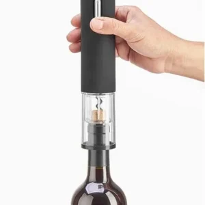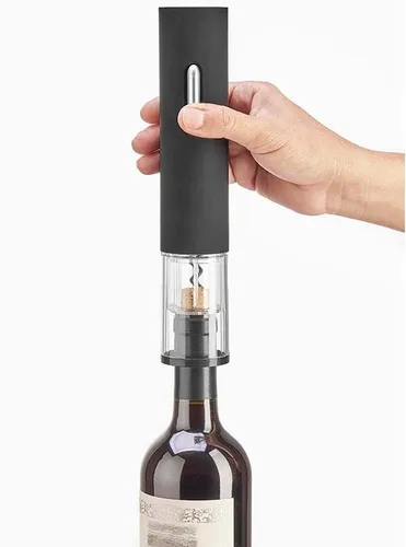 Como desarrolhar: 1. Coloque o cortador de tiras no gargalo da garrafa de vinho e segure o cortador de tiras firmemente por uma mão, girando para a esquerda e para a direita um semicírculo, o selo será cortado.2. Segure a garrafa com umas das mãos e o abridor de vinho com a outra. Coloque o abridor em cima da garrafa garantindo que fique o mais vertical possível.3. Segure o abridor e a garrafa com firmeza e, em seguida, pressione e segure o botão “?”. A espiral vai girar no sentido horário e entrar na rolha, em seguida, remova-a gradualmente da garrafa, o que leva de 5 a 6 segundos. Quando o mecanismo do abridor de vinho para a rolha foi totalmente removida da garrafa. Retire o abridor de vinho da garrafa.4. Para remover a rolha, pressione o botão “?”. A espiral girará no sentido anti-horário e soltará a rolha, o que leva de 5 a 6 segundos.